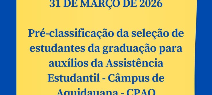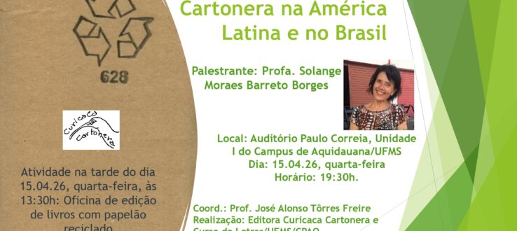 No dia 15 de abril de 2026 (quarta-feira), às 19h30, no auditório da unidade II, o Campus de Aquidauana receberá a professora Solange Moraes Barreto Borges, para uma palestra sobre o Movimento Cartonero na América Latina e no Brasil. Trata-se de um movimento que nasceu em Buenos Aires, na Argentina, entre escritores e catadores de […]
