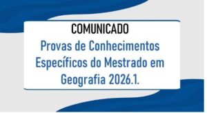 COMUNICADO – PROVA DE CONHECIMENTOS ESPECÍFICOS | SELEÇÃO DO MESTRADO EM GEOGRAFIA 2026/1