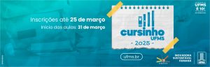 As inscrições para o Cursinho UFMS podem ser feitas até 25 de março na página cursinho.ufms.br. Uma oportunidade que pode ajudar quem deseja ingressar na UFMS e se preparar para o Vestibular e para o Programa de Avaliação Seriada Seletiva (PASSE) UFMS, com apoio de professores especialistas, mestres e doutores e tutoria de estudantes e técnicos-administrativos. As atividades se iniciam no dia 31 de março e vão até 5 de dezembro.