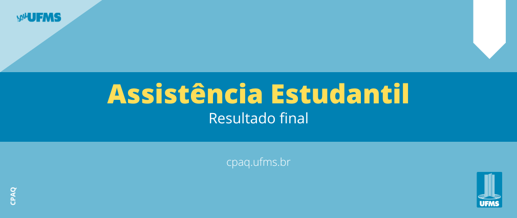A FUNDAÇÃO UNIVERSIDADE FEDERAL DE MATO GROSSO DO SUL, por meio da Pró-Reitoria de Assuntos Estudantis, no uso de suas atribuições legais, e de acordo com o disposto na Resolução Coun nº 124, de 31 de agosto de 2021, torna público o Resultado Final do Edital Proaes/UFMS nº 76, de 28 de setembro de 2022.