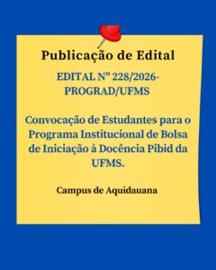 EDITAL Nº 228/2026-PROGRAD/UFMS Convocação de Estudantes para o Programa Institucional de Bolsa de Iniciação à Docência Pibid da UFMS