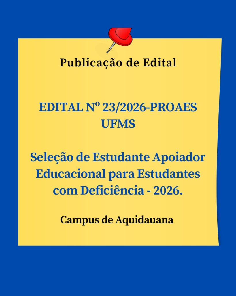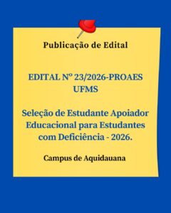 EDITAL Nº 23/2026-PROAES UFMS Seleção de Estudante Apoiador Educacional para Estudantes com Deficiência