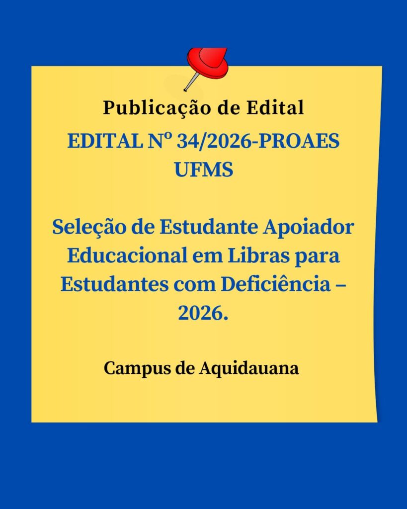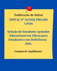 EDITAL Nº 34/2026-PROAES UFMS Seleção de Estudante Apoiador Educacional em Libras para Estudantes com Deficiência