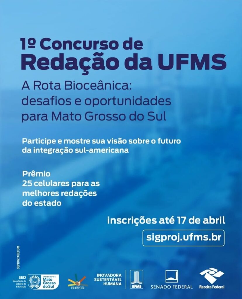 (Português do Brasil) EDITAL Nº 193/2026-PROECE/UFMS – 1º Concurso de Redação da UFMS “A Rota Bioceânica: Desafios e Oportunidades para Mato Grosso do Sul”
