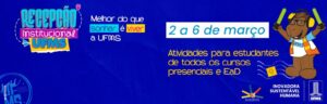 Na quarta-feira, 4 de março, a recepção será conduzida pelas direções e coordenações de curso, com orientações acadêmicas importantes para os estudantes. No mesmo dia, às 19 horas, ocorre a primeira programação voltada aos estudantes da educação a distância, com a live Agora você é UFMS!, que apresentará a organização, a metodologia dos cursos e a Trilha Virtual de Boas-Vindas.