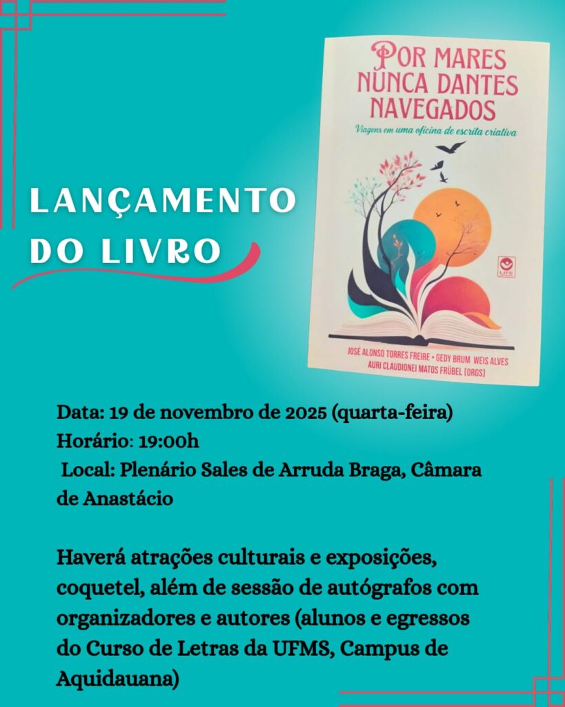 Haverá mais um momento para quem perdeu o primeiro lançamento: será na cidade de Anastácio, no Plenário Sales de Arruda Braga, na Câmara Municipal da cidade, dia 19 de novembro de 2025, às 19h. Na oportunidade, também haverá atrações culturais, exposições, coquetel e sessão de autógrafos com os autores, que são alunos e egressos do Curso de Letras da UFMS, do Campus de Aquidauana.