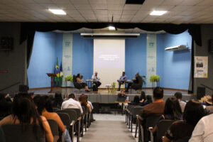 Em seguida, foi realizada a mesa-redonda mediada pelo Prof. José Alexandre dos Santos sobre o “Corredor Bioceânico: Gestão, Sustentabilidade e Impacto Social”, reunindo três perspectivas-chave do desenvolvimento regional: