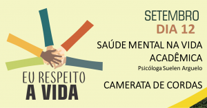 As atividades previstas incluem uma apresentação cultural da Camerata de Cordas Dedilhadas da UFMS e uma palestra, intitulada “Saúde Mental na Vida Acadêmica – suicídio: fatores de proteção e formas de prevenção”, a ser ministrada pela Psicóloga Suelen Arguelo.
