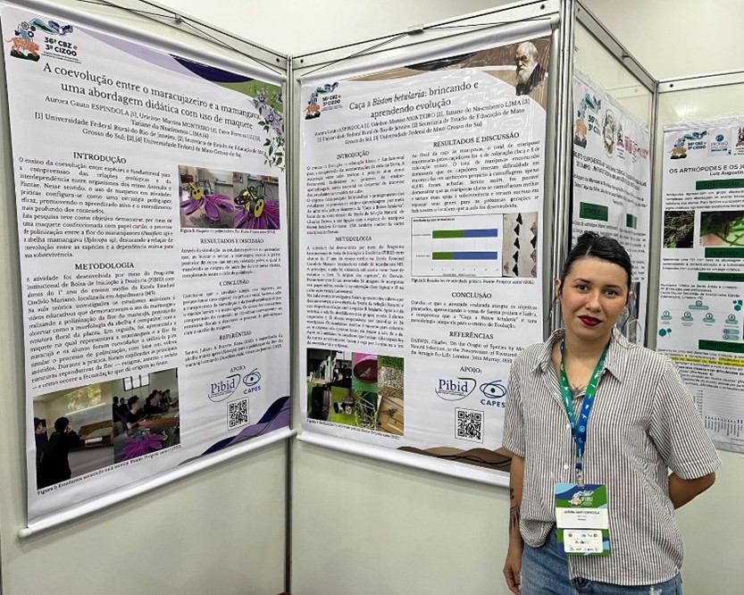 Durante o evento foram apresentados dois trabalhos “Caça a Biston betularia: brincando e aprendendo evolução” e “A Coevolução entre o Maracujazeiro e a Mamangava: Uma Abordagem Didática com Uso de Maquete”. As pesquisas estão voltadas ao ensino de Zoologia por meio de metodologias ativas, destacando estratégias que incentivam a participação e o protagonismo dos estudantes no processo de aprendizagem.