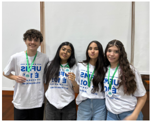 Os alunos Ana Laura Lima Oruê, Arthur Ferreira Bondarczuk, Júlia Esther Souza da Costa e Júlia Aivi Brasiliense da Escola Cândido Mariano foram vice-campeões na FeciAq – Feira de Ciências