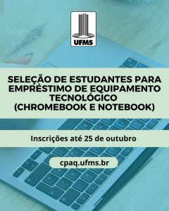 A FUNDAÇÃO UNIVERSIDADE FEDERAL DE MATO GROSSO DO SUL, por meio da Pró-Reitoria de Assuntos Estudantis, no uso de suas atribuições legais, e considerando a Resolução nº 124 Coun/UFMS, de 31 de agosto de 2021, torna pública a abertura de Edital para Estudantes regularmente matriculados nos cursos de graduação (presenciais e modalidade a distância) e em vulnerabilidade socioeconômica da UFMS para receber, por empréstimo, Equipamento Tecnológico (Chromebook e Notebook), conforme disposições deste Edital.