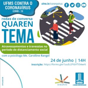 Nos dias 24 e 25 de junho, novos encontros virtuais abordarão assuntos relacionados ao distanciamento social. Os eventos fazem parte do projeto QuarenTema e são desenvolvidos por profissionais da área de saúde mental da UFMS.