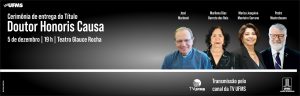A solenidade será realizada no Teatro Glauce Rocha, com transmissão ao vivo pelo canal da TV UFMS. Os homenageados foram indicados e aprovados pelo Conselho Universitário da Universidade.