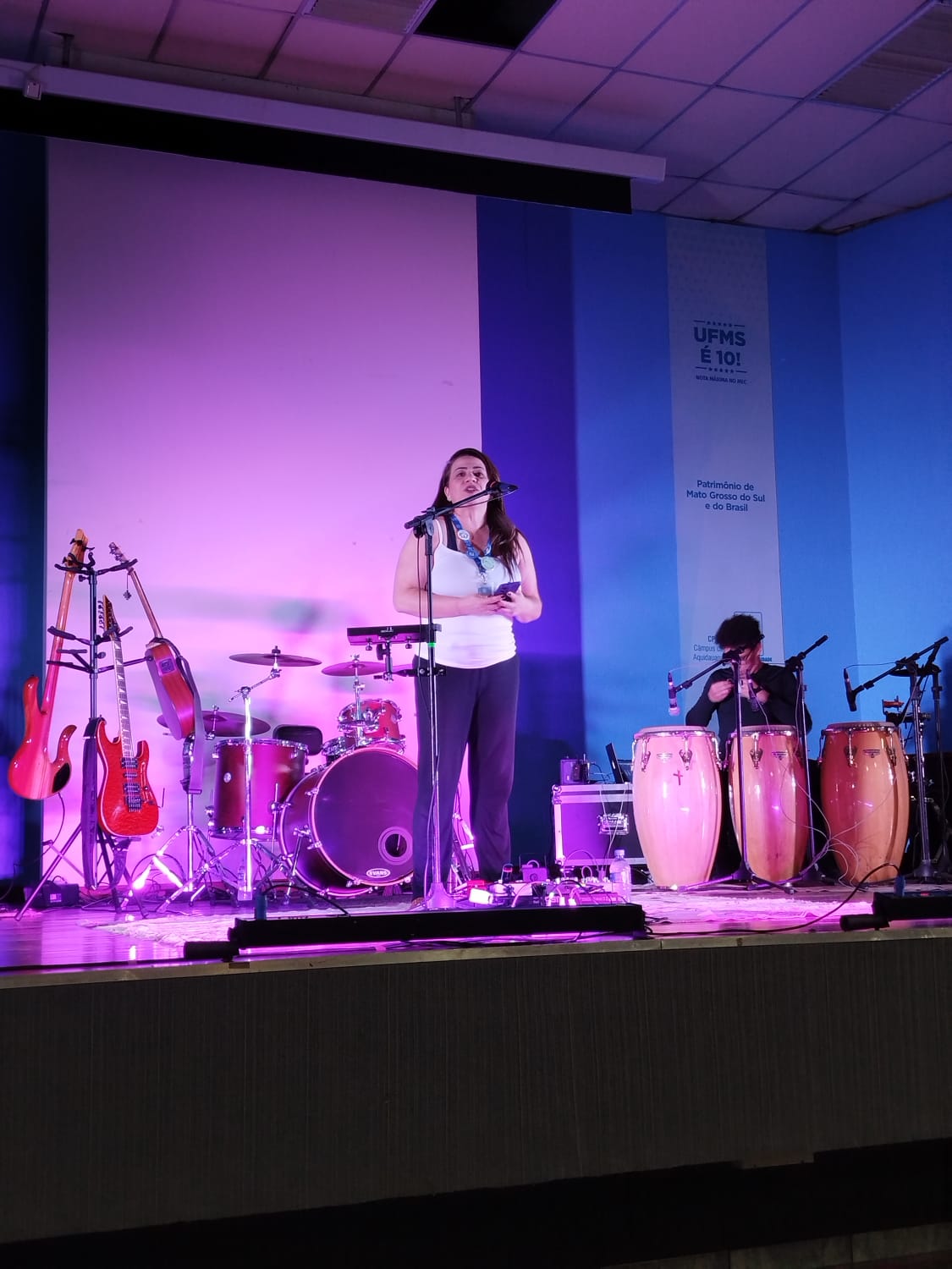 Na útlima segunda-feira, dia 27 de outubro, o Campus de Aquidauana foi agraciado com o último Show da Turnê de JuSouc Trio. A apresentação, ocorrida no Anfiteatro da Unidade I, contou com uma experiência artística de excelência. Multi-instrumentalista, a compositora, através da música, traz reflexões sobre estereótipos de gênero. “É uma manifestação artística engajada na luta contra a misoginia e na valorização da Mulher no cenário cultural”.